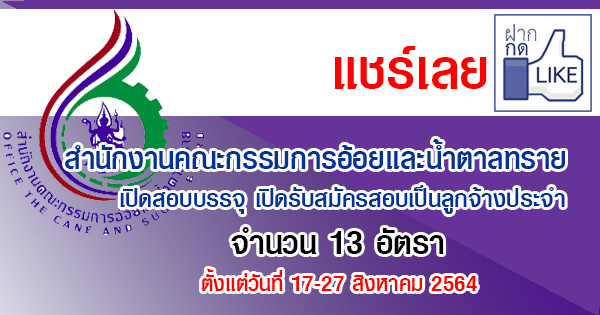 สำนักงานคณะกรรมการอ้อยและน้ำตาลทราย เปิดรับสมัครสอบเป็นลูกจ้างประจำ 13 อัตรา ยื่นใบสมัครทางอีเมล ตั้งแต่วันที่ 17-27 สิงหาคม 2564