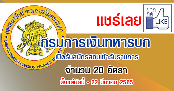 กรมการเงินทหารบก เปิดรับสมัครสอบเข้ารับราชการ 20 อัตรา รับสมัครทางอินเทอร์เน็ต ตั้งแต่บัดนี้ - 22 มีนาคม 2565