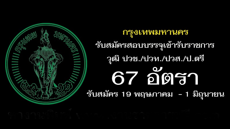 กทม. เปิดรับสมัครสอบบรรจุเข้ารับราชการ 67 อัตรา รับสมัครทางอินเทอร์เน็ต ตั้งแต่วันที่ 19 พฤษภาคม - 1 มิถุนายน 2565
