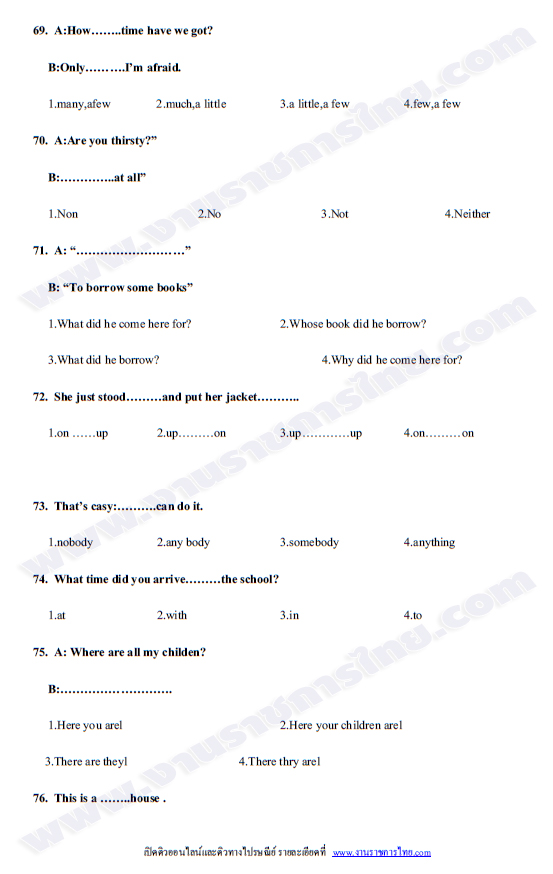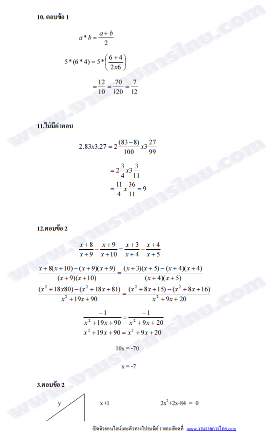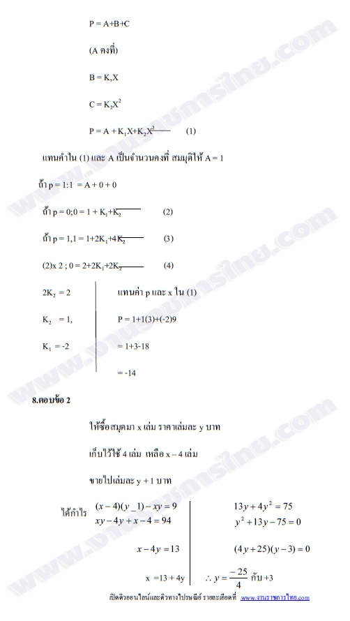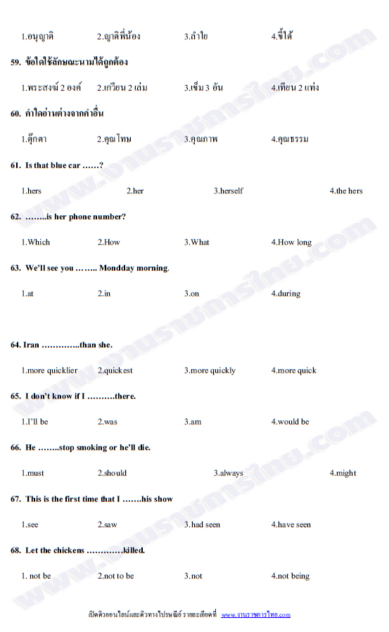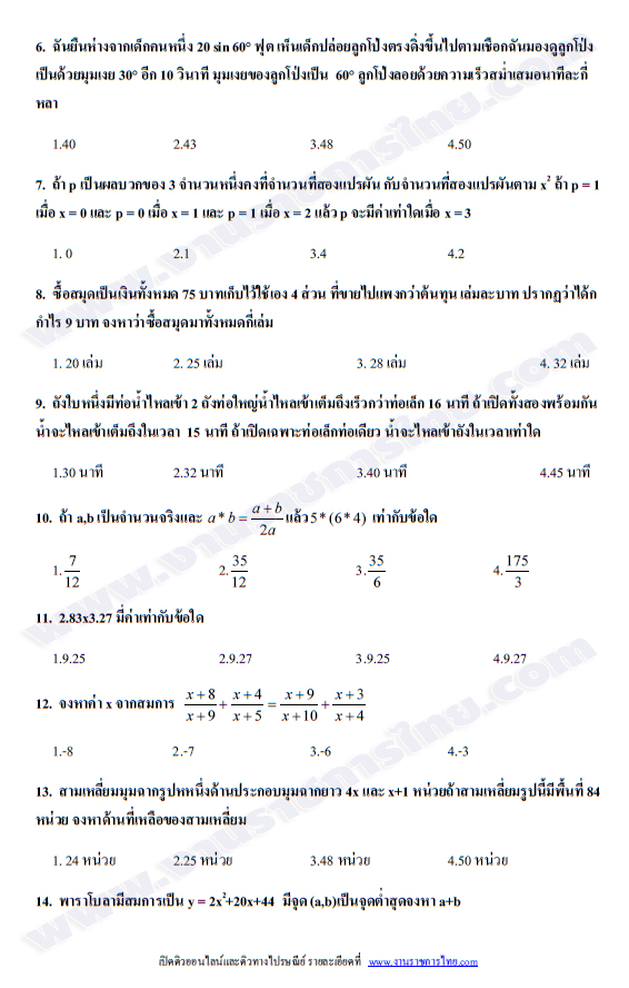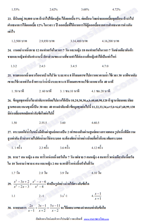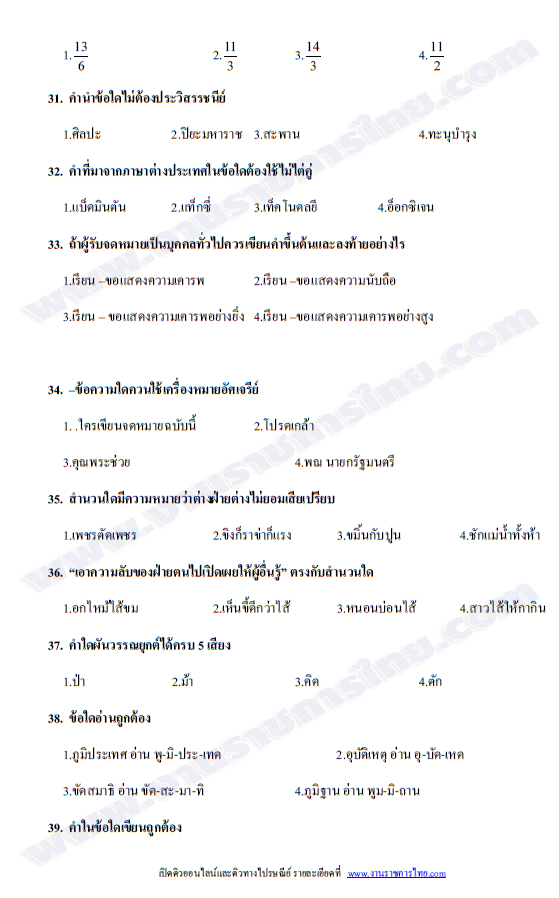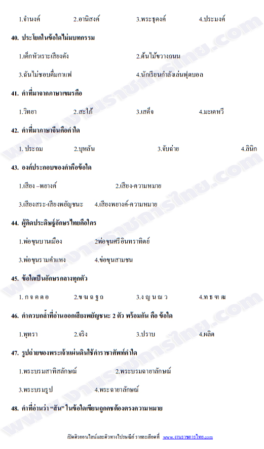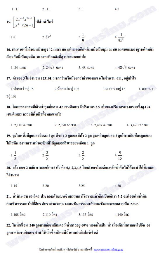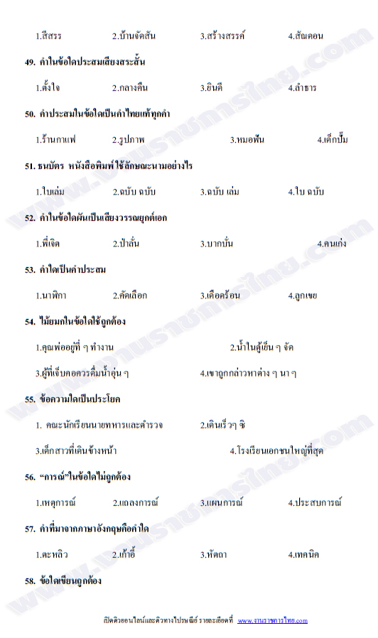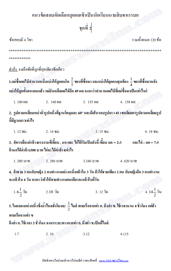 แนวข้อสอบคัดเลือกบุคคลเข้าเป็นนักเรียนนายสิบทหารบก