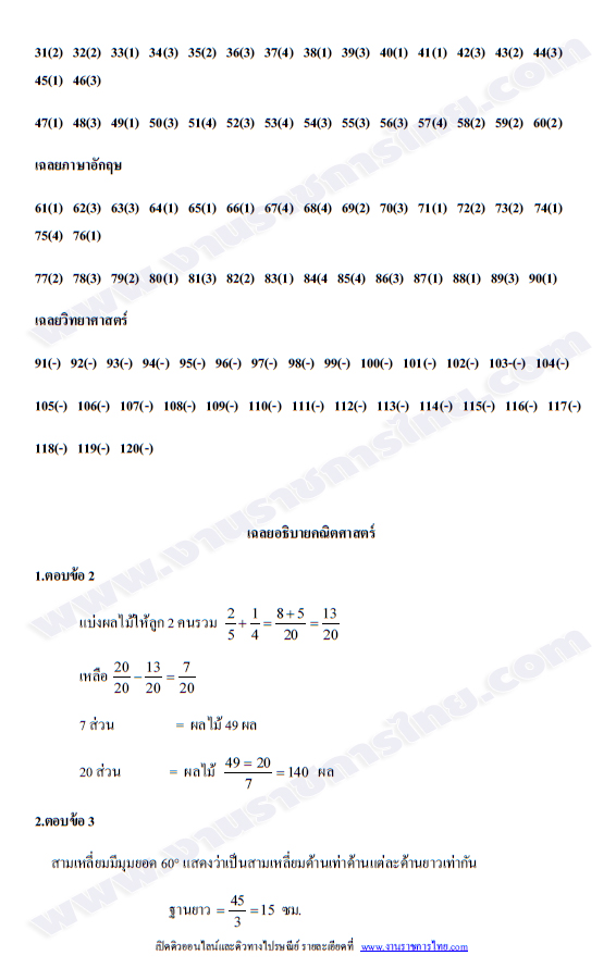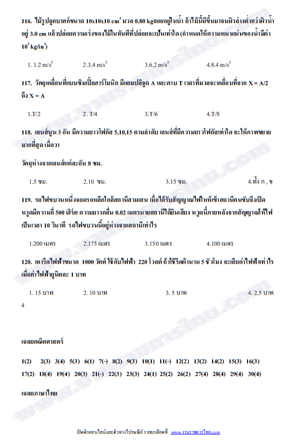 ข้อสอบมี 4 วิชา รวมทั้งหมด 120 ข้อ
